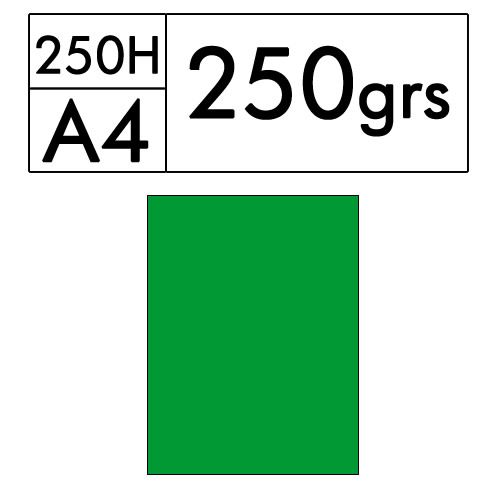 Paquete de 250 hojas A4 de cartulina color verde intenso de 250 gr. (hierba 13)