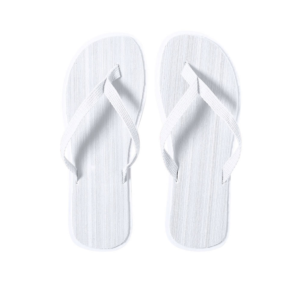 Par de chanclas con suela 100% personalizable y especialmente diseñadas para marcaje en sublimación. Con resistente suela de EVA, tiras de PVC en color negro y disponibles en dos tallas: 36-38 y 42-44...