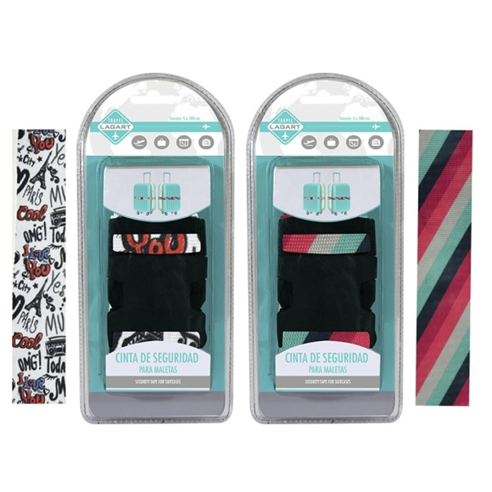 Cinta para maletas ajustable fabricada en resistente poliéster. Con cierre de hebilla ajustable y contraseña de 3 cifras. En discreto color negro y de 200cm de largo. Presentada en una bolsa individua...