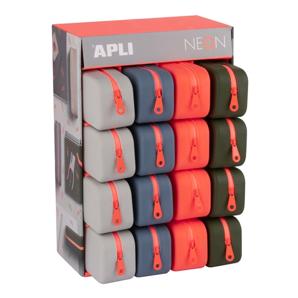Ref. AP19498 - Apli Up North Expositor de 16 Estuches de Silicona Rectangular - Cremallera Repelente al Agua - Medidas 75x185x55mm - Colores Surtidos.