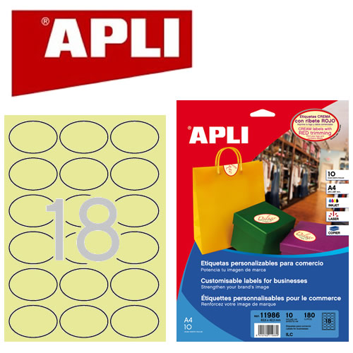 Ref. 11986 - Apli Etiquetas Crema con Ribete Permanentes 63.5 x 42.3mm 10 Hojas.