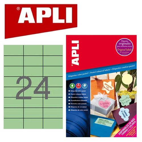 Ref. AP11844 - Etiquetas verde pastel permanentes 70,0 x 37,0 mm 20 hojas.