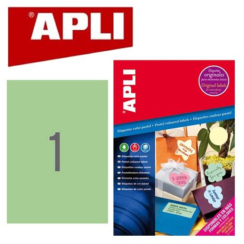 Ref. AP11847 - Etiquetas verde pastel permanentes 210,0 x 297,0 mm 20 hojas.