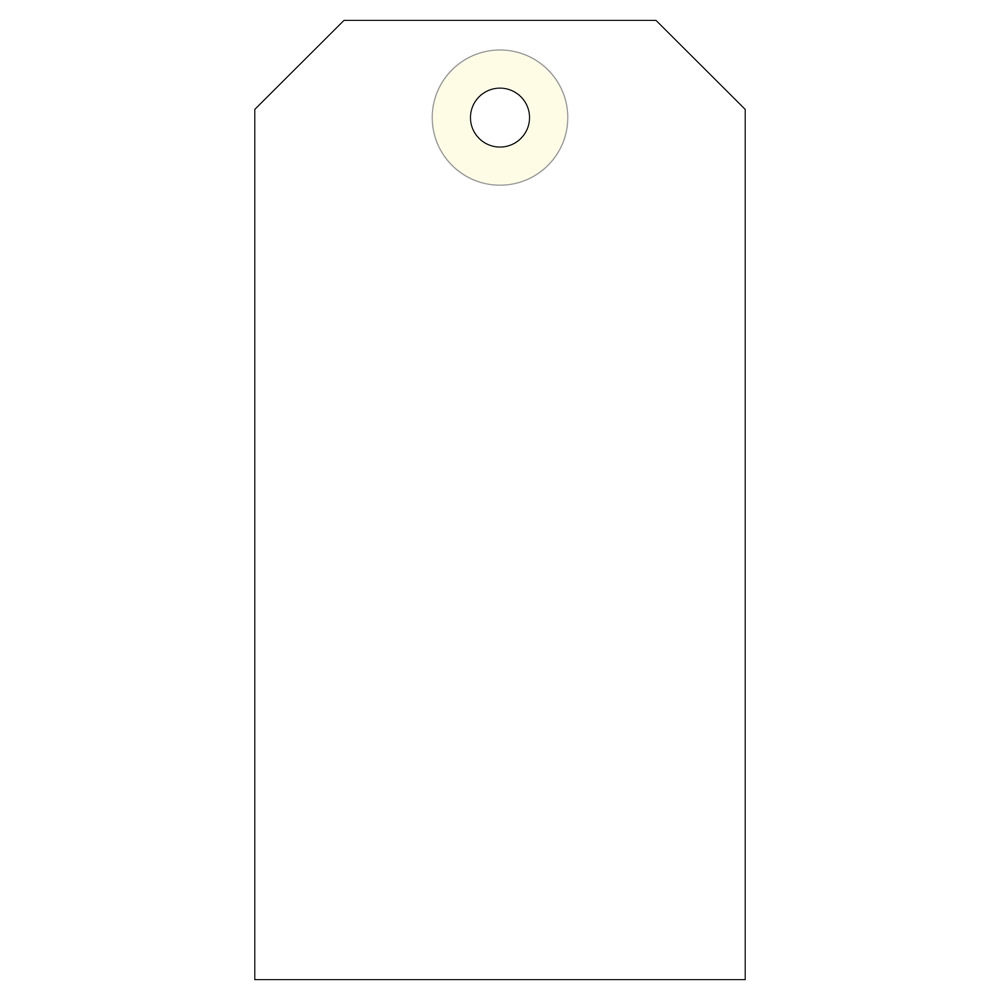 Etiquetas colgantes con arandela en color crema tamaño 120 x 57 mm. Cada caja incluye 1.000 etiquetas.