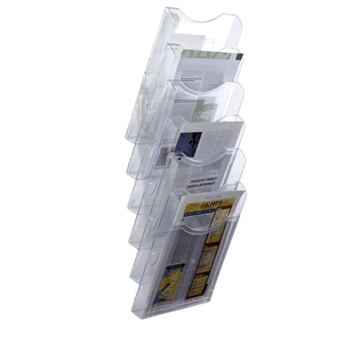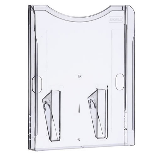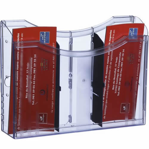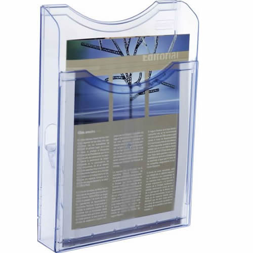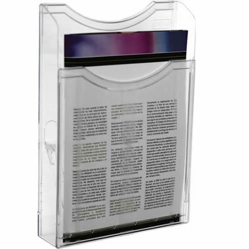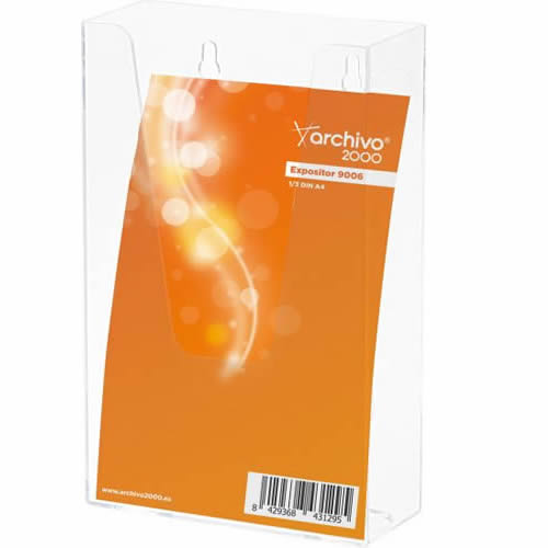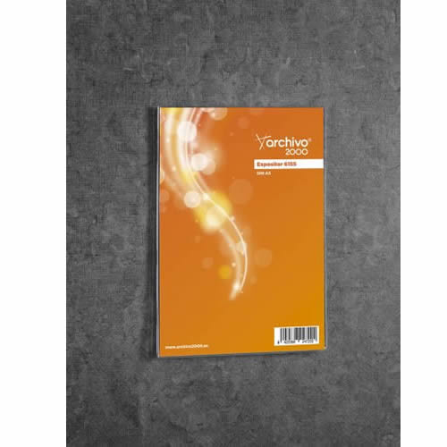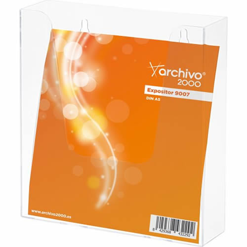 Expositor mural Archivo 2000 con taladros DIN A5 vertical. Fabricado en poliestireno ultra transparente de gran calidad y resistencia. Con agujeros pre-perforados para facilitar el montaje en la pared...