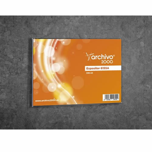 Expositor mural Archivo 2000 con adhesivo DIN A5 vertical. Fabricado en poliestireno ultra transparente de gran calidad y resistencia. Evita dañar la superficie de fijación. No es necesario quitar el ...