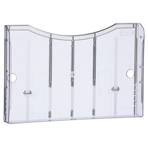 Ref. AD9007CSTP - Portafolletos mural Archivo 2000 ultra transparente DIN A5 vertical. Espesor 2 mm. Hendidura frontal y agujeros traseros para facilitar la colocación. Medidas exteriores: 45x175x180 mm. Color cristal transparente.