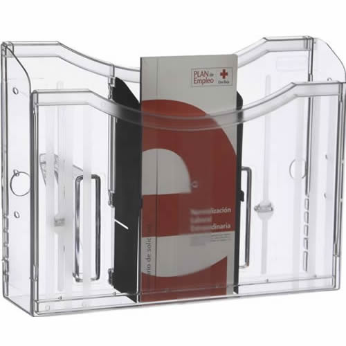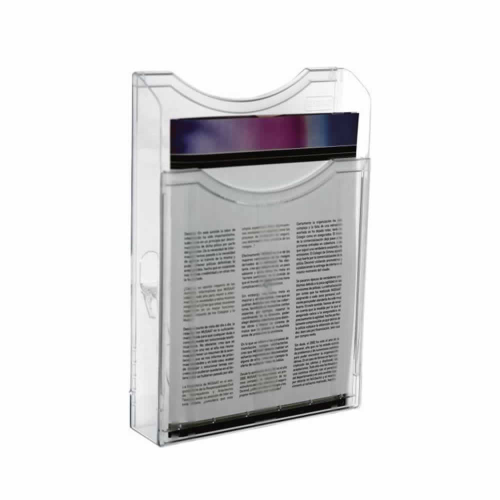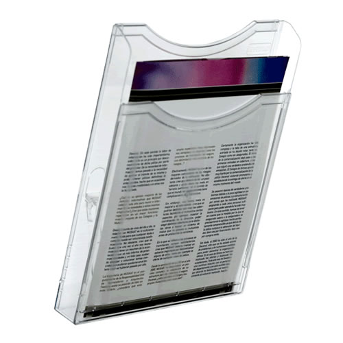 Portafolletos mural Archivo 2000 ultra transparente DIN A4 vertical. Fabricado en poliestireno ultra transparente de máxima calidad y resistencia. Fondo de cajetín de 45 mm. Diseñados con hendidura fr...