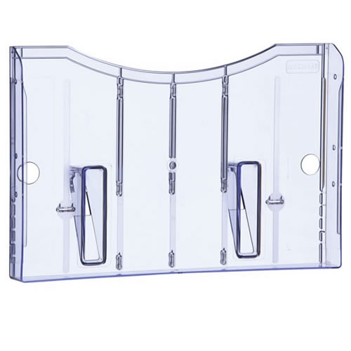 Expositor mural Archivo 2000 con taladros DIN A4 horizontal. Fabricado en poliestireno ultra transparente de gran calidad y resistencia. Con agujeros pre-perforados para facilitar el montaje en la par...