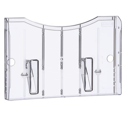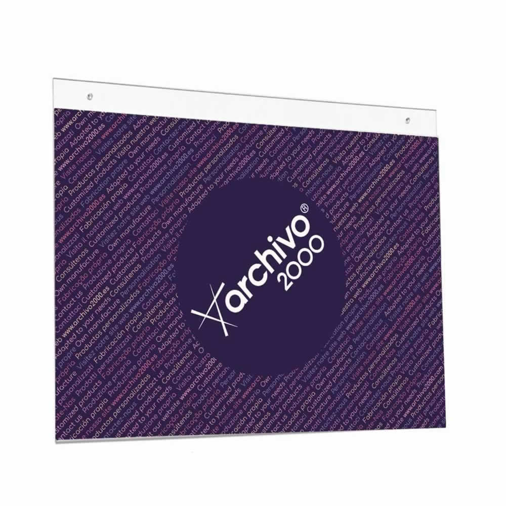 Expositor mural Archivo 2000 con taladros DIN A3 horizontal. Fabricado en poliestireno ultra transparente de gran calidad y resistencia. Con agujeros pre-perforados para facilitar el montaje en la par...