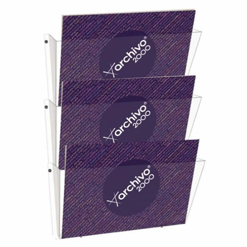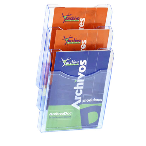 Portadocumentos mural Archiplay Archivo 2000 con 3 compartimentos DIN A4 vertical. Fabricado en poliestireno transparente de gran calidad y resistencia. Se suministran completamente montados y se fija...