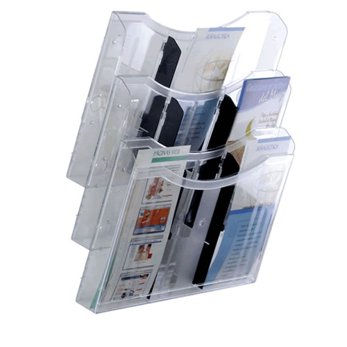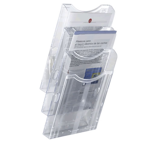 Portafolletos mural Archivo 2000 ultra transparente 1 / 3 DIN A4 vertical. Fabricado en poliestireno ultra transparente de máxima calidad y resistencia. Fondo de cajetín de 40 mm. Diseñados con hendidur...