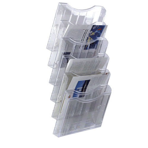 Expositor mural Archibend Archivo 2000 con 5 compartimentos DIN A5 vertical. Fabricado en polipropileno copolímero translúcido. Ideales para entidades bancarias, hostelería, recepciones, compañías ase...
