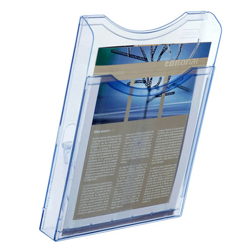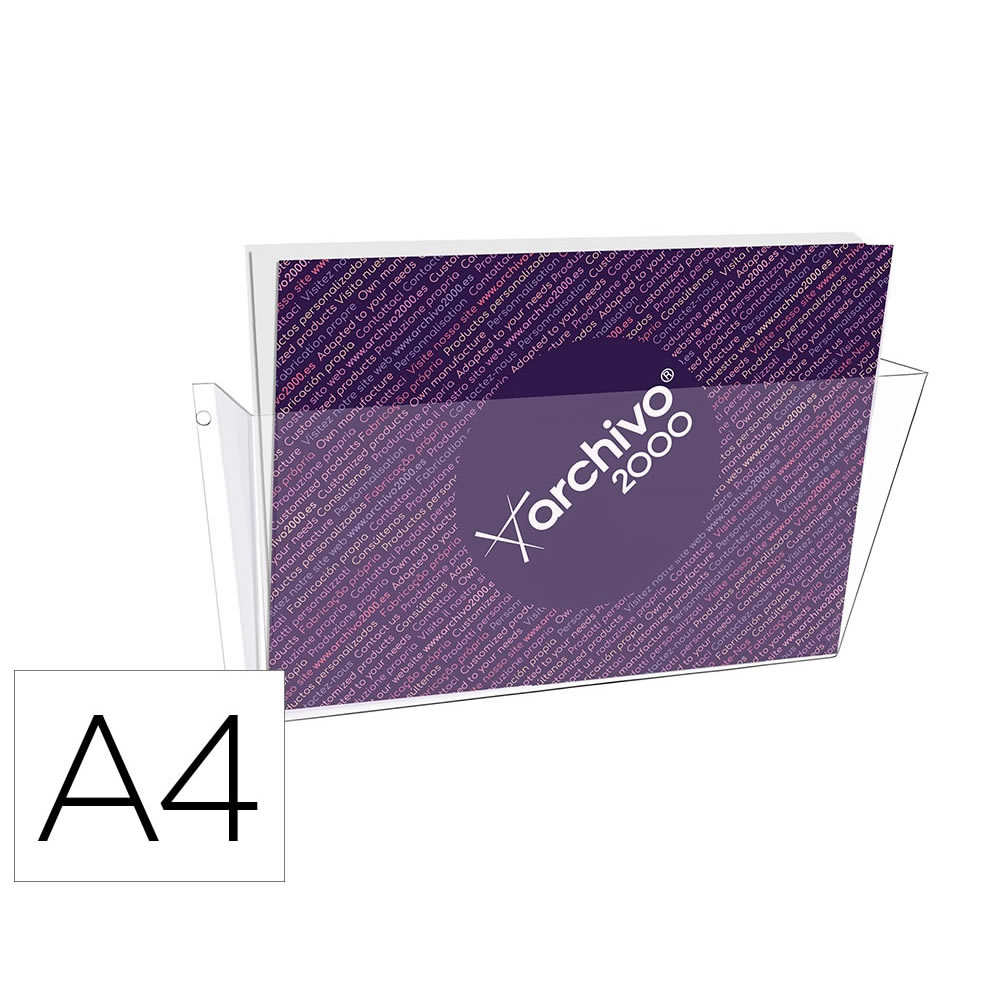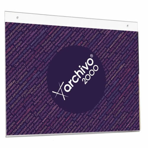 Expositor mural Archivo 2000 con taladros DIN A4 vertical. Fabricado en poliestireno ultra transparente de gran calidad y resistencia. Con agujeros pre-perforados para facilitar el montaje en la pared...