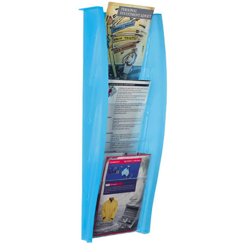 Ref. AD7001LGTL - Expositor mural Archibend Archivo 2000 con 5 compartimentos DIN A5 vertical. Medidas exteriores: 105x210x575 mm. Color azul mar traslúcido.