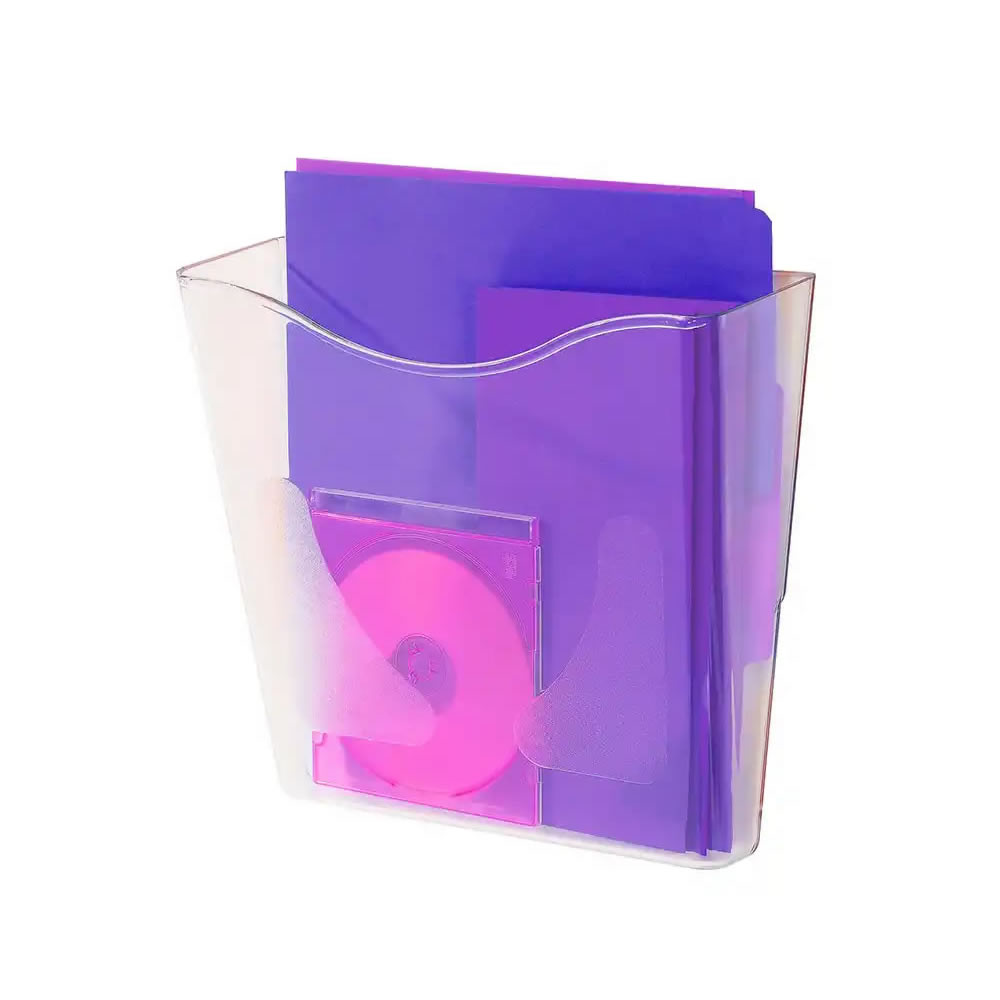 Ref. AD9005CSTP - Portafolletos mural Archivo 2000 ultra transparente DIN A4 vertical. Espesor 2 mm. Hendidura frontal y agujeros traseros para facilitar la colocación. Medidas exteriores: 55x235x240 mm. Color cristal transparente.