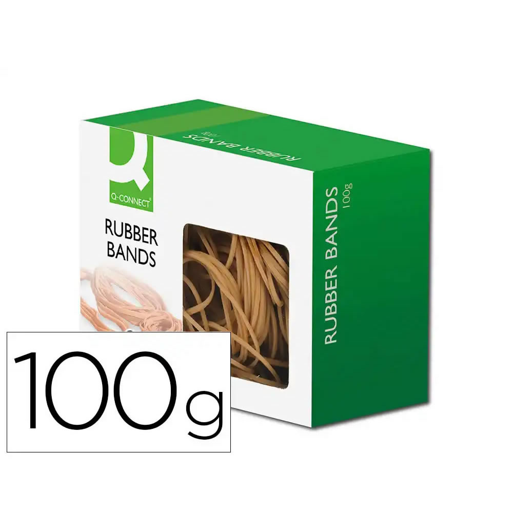 Bolsa de gomas elásticas tamaño Ø 100 x 2 mm. Contenido: 100 g. Gomas elásticas de buena calidad, gran elasticidad y excelente resistencia, fabricadas con un 70% de caucho natural. Perfectas para orde...