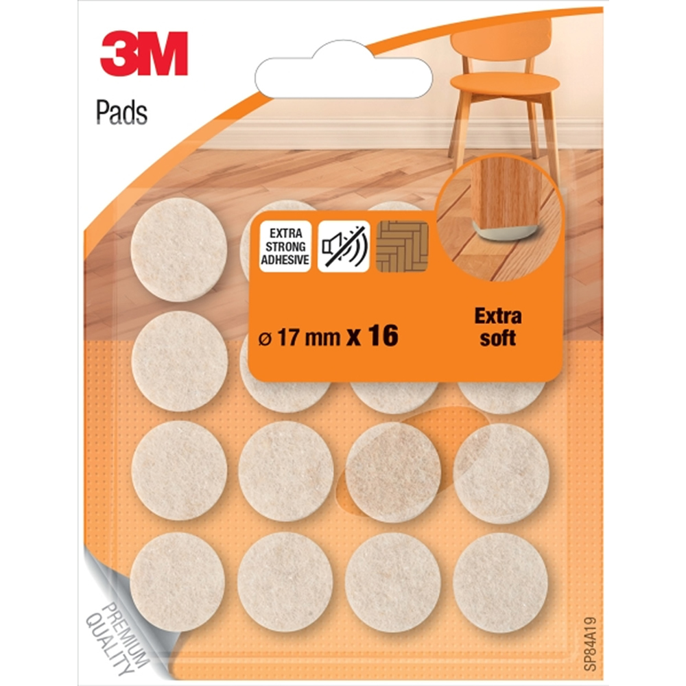 Ref. 3M7100095902 - 3M Pack de 16 Almohadillas de Fieltro - 17mm de Diametro - Extrasuaves - Color Beige.
