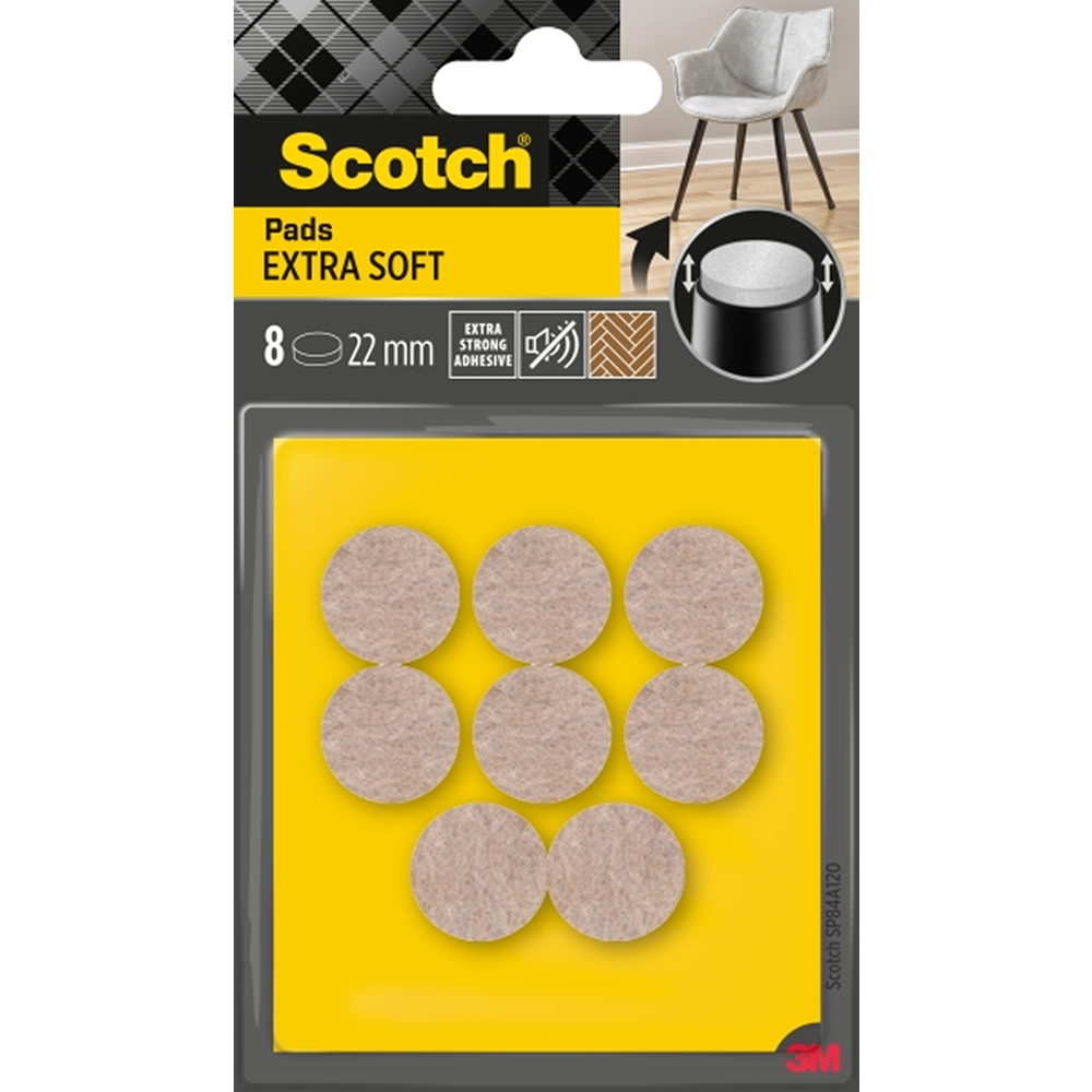 Ref. SC7100308542 - Scotch Pack de 8 Almohadillas de Fieltro Adhesivas - Extra Suaves - Diametro de 22mm - Color Beige.