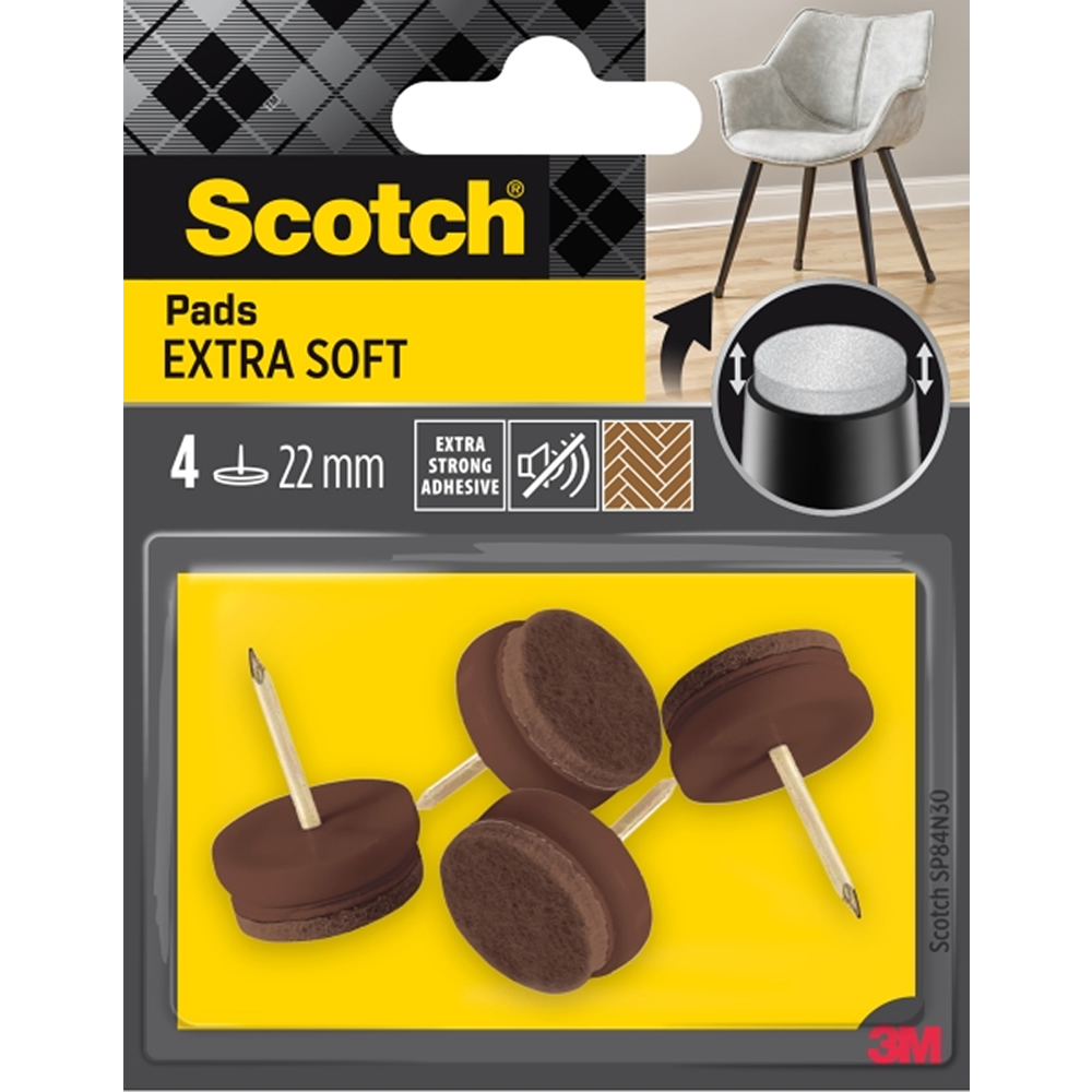 Ref. SC7100309132 - Scotch Pack de 4 Almohadillas de Fieltro con Clavo - Extrasuaves - Diametro de 22mm - Color Marron.