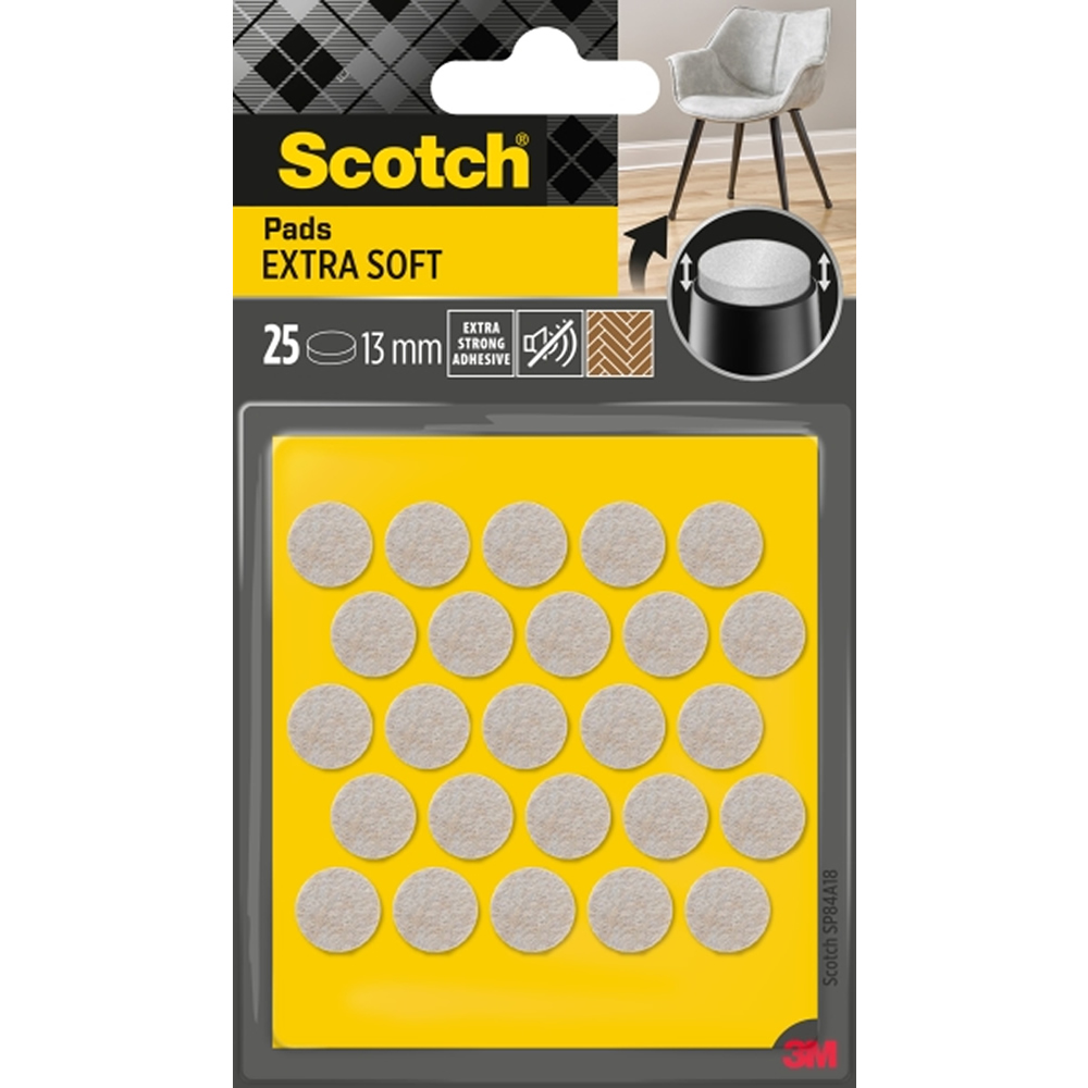 Ref. SC7100309133 - Scotch Pack de 25 Almohadillas de Fieltro Adhesivas - Extra Suaves - Diametro de 13mm - Color Beige.