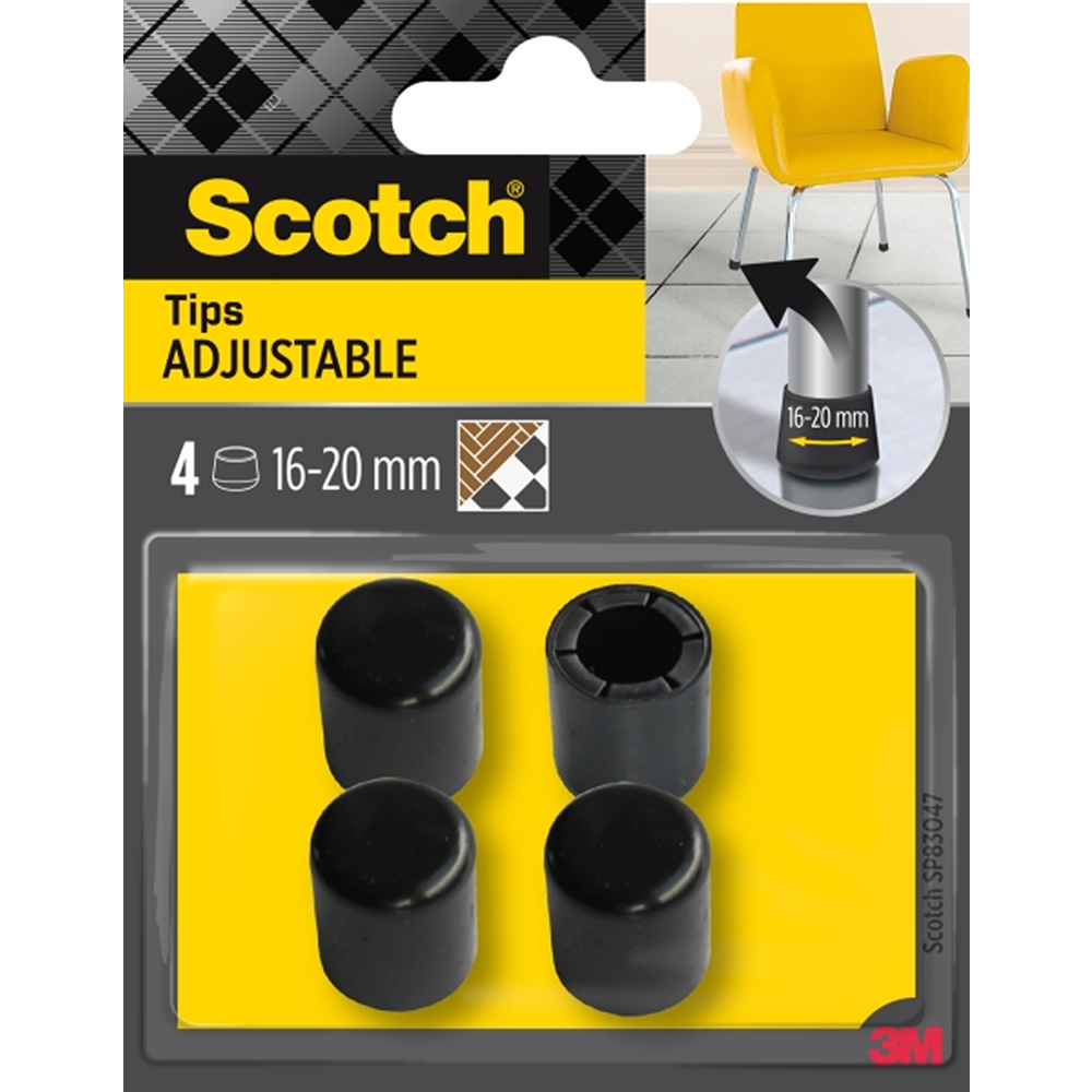 Las conteras ajustables Scotch® son nuestras fundas negras fabricadas con polímeros resistentes diseñadas para las patas de los muebles para evitar que rayen los suelos. Son fáciles de instalar y se d...