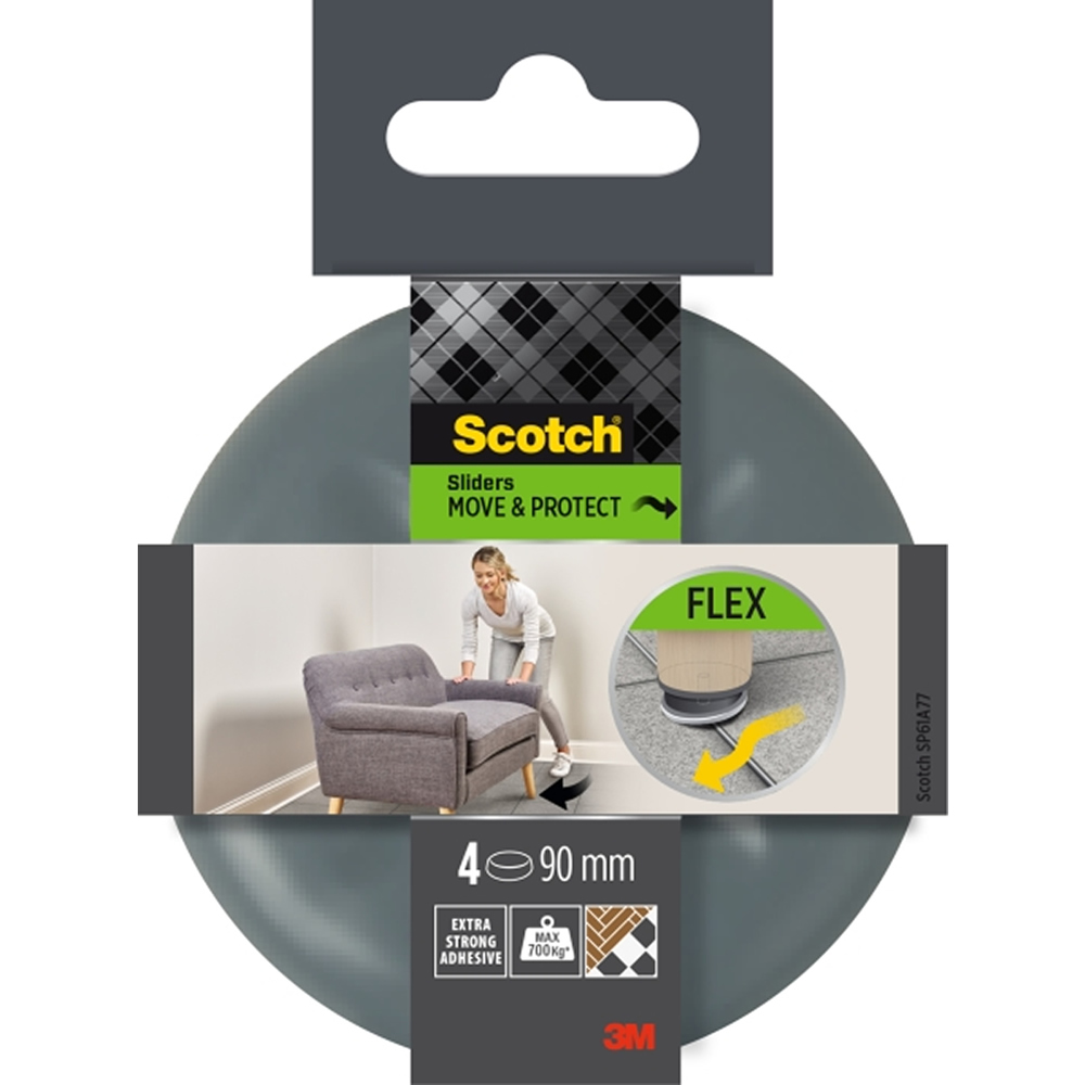 Ref. SC7100309829 - Scotch Move and Protect Flex Pack de 4 Patines Deslizantes Adhesivos - Diametro de 90mm - Soporta hasta 700kg - Color Gris.