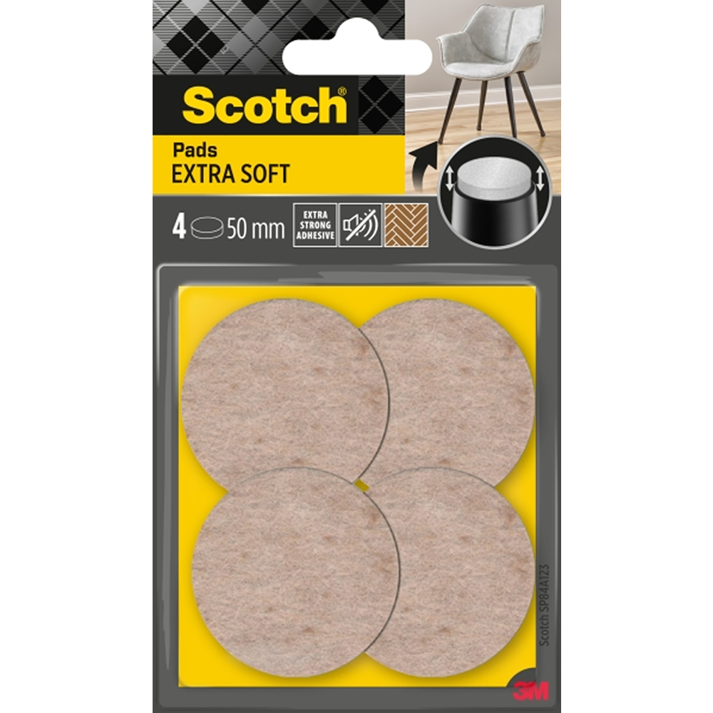 Ref. SC7100309848 - Scotch Pack de 4 Almohadillas de Fieltro Adhesivas - Extra Suaves - Diametro de 50mm - Color Beige.