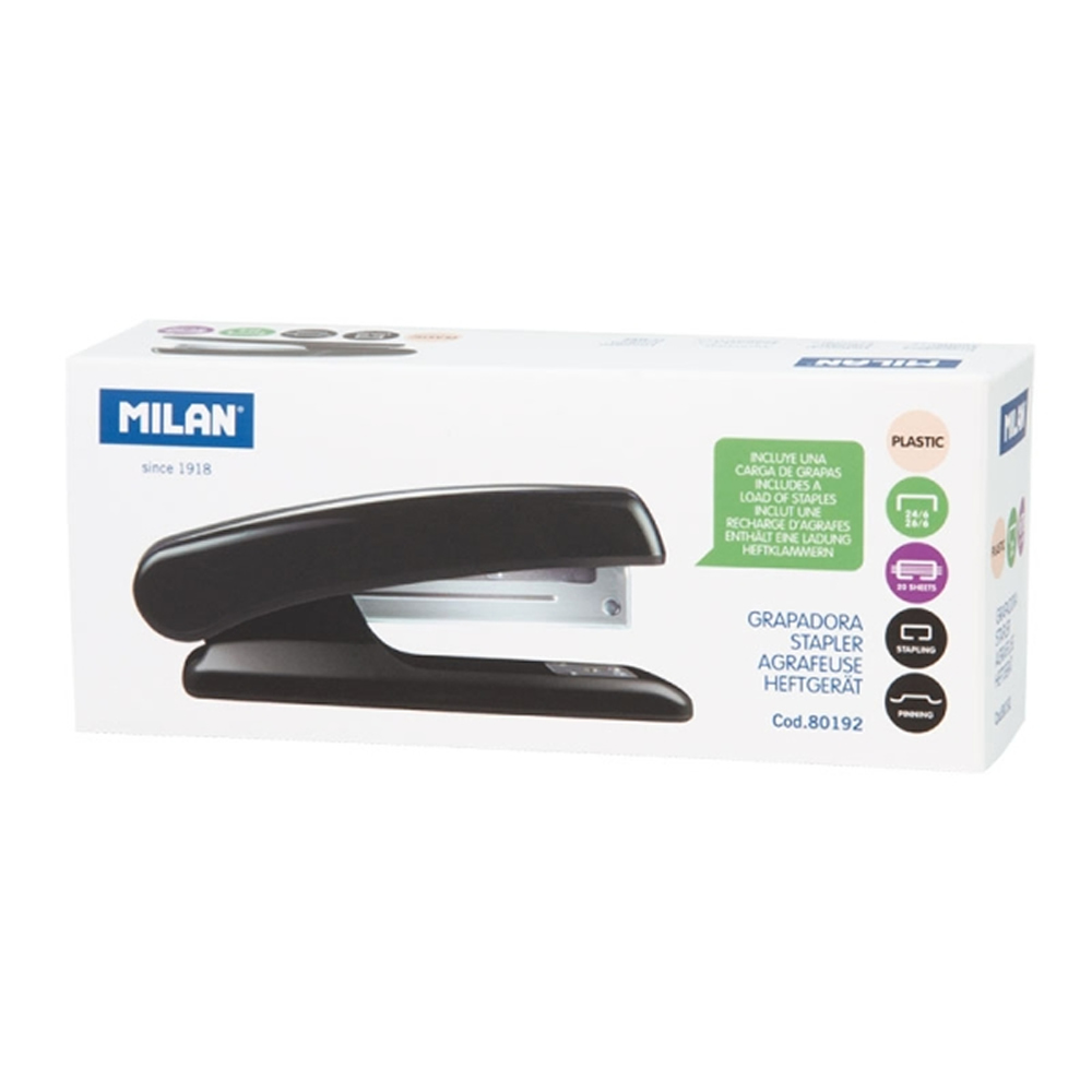 Grapadora fabricado con plástico resistente a los golpes y equipado con mecanismo de acero de alta calidad.