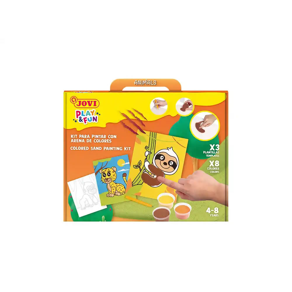 Ref. JO2101 - Jovi Play & Fun Kit Pinta con Arena Animals con 8 Botes de Arena + 1 Punzon + 3 Laminas con Diseños de Animales Terrestres - Colores Surtidos.