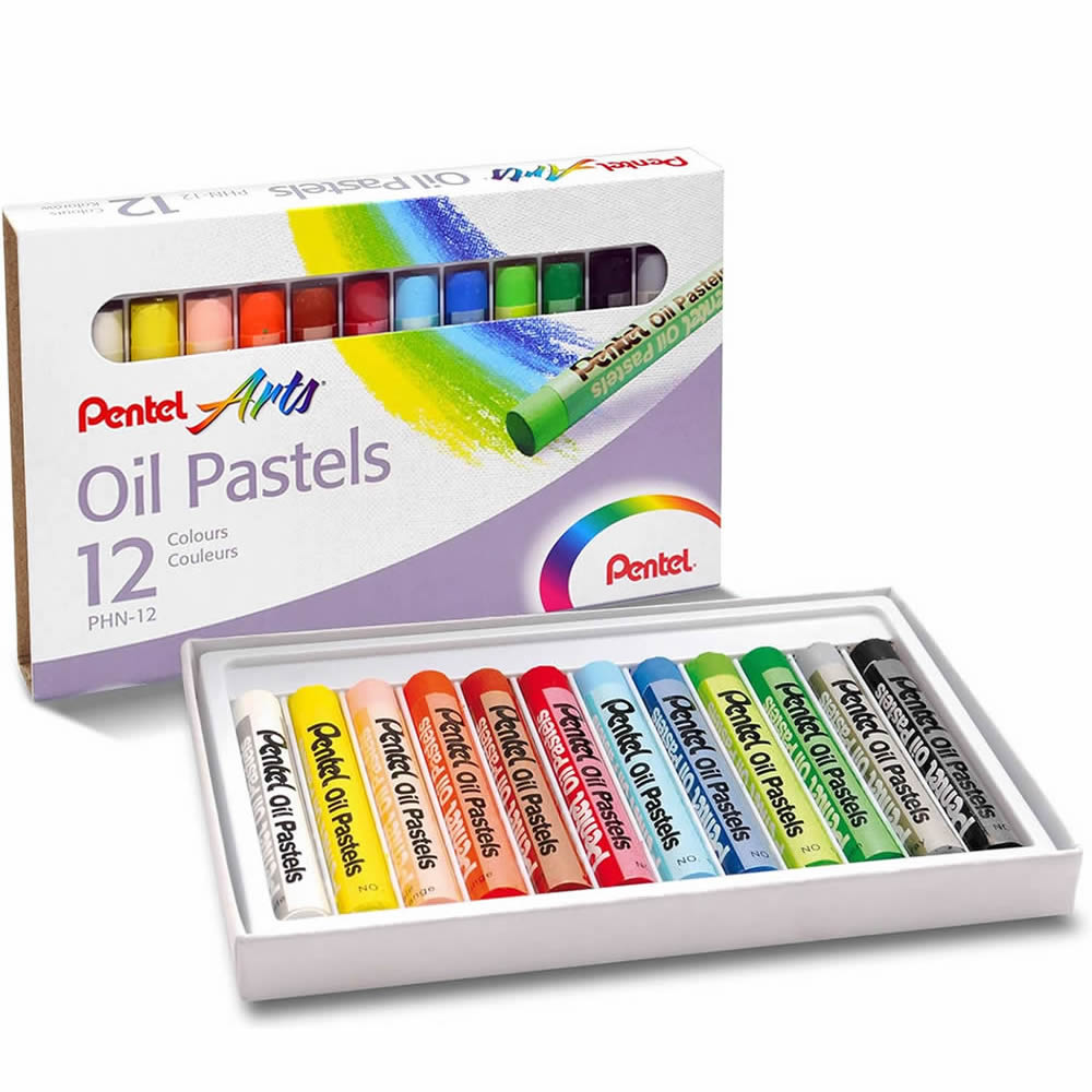 Ref. PHN-12 - Pentel Oil Pastels Pack de 12 Pasteles Oleo - Blandos, Cremosos y de Secado Lento - Colores Surtidos.