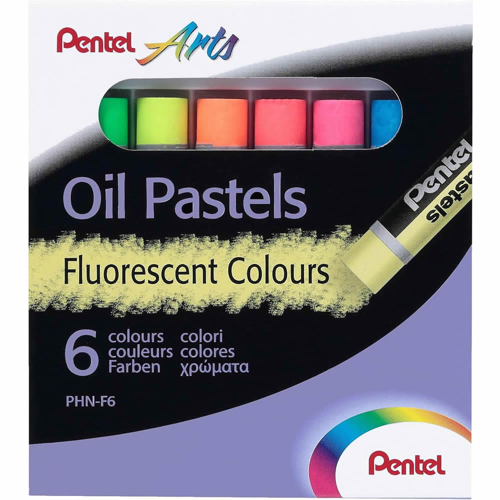 Ref. PHN-F6 - Pentel Oil Pastels Pack de 6 Pasteles Oleo Fluorescentes - Blandos, Cremosos y de Secado Lento - Colores Fluorescentes Surtidos.