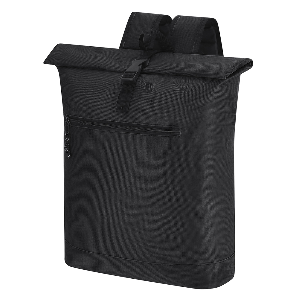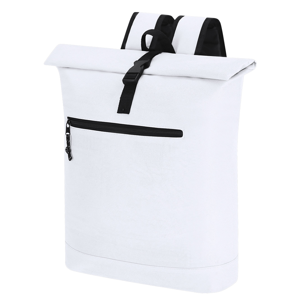 Mochila fabricada en resistente 600D RPET. Cuenta con un bolsillo principal que se cierra mediante hebilla y un bolsillo frontal adicional con cierre de cremallera. Las cintas para los hombros son aco...