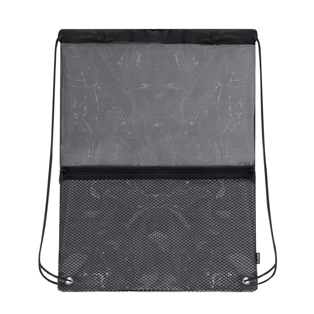 Mochila de cuerdas fabricada en suave poliéster RPET 210D. Cuenta con cuerdas de autocierre negras en argollas de tela. Incluye un bolsillo frontal de rejilla con cierre de cremallera a juego. Logotip...