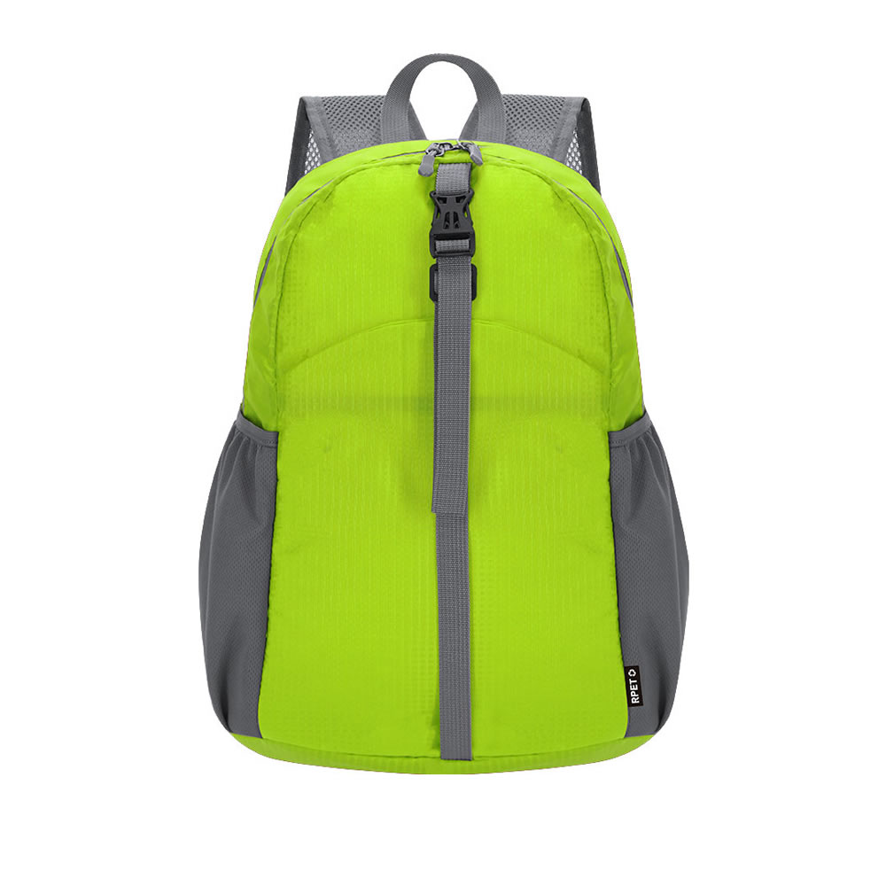 Mochila plegable en resistente poliéster RPET 210D y ripstop. Con cierre bucle en compartimento principal, cordones elásticos y cintas de hombros regulables.El material RPET se elabora a partir de plá...