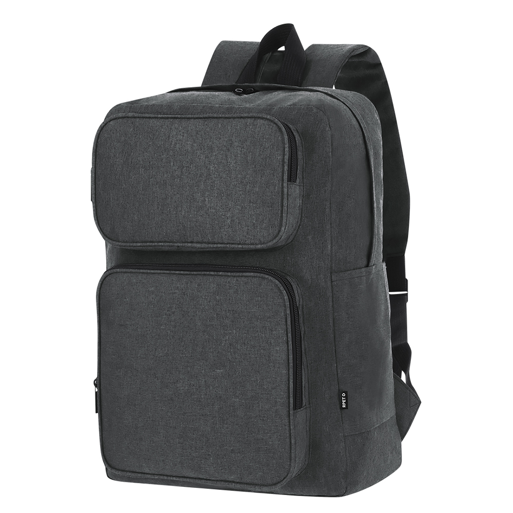 Mochila fabricada en resistente poliéster 600D RPET. Compartimento principal con cierre de cremallera invisible, doble bolsillo exterior y cintas para hombros ajustables. Disponible en variada gama de...