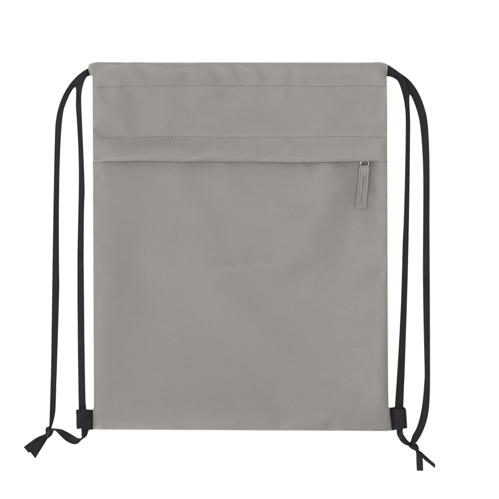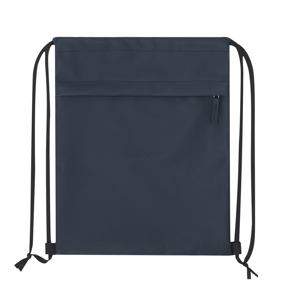 Mochila de cuerdas fabricada en suave PU combinado con resistente poliéster 600D. Incluye funcional bolsillo frontal con cierre de cremallera y tirador a juego en PU.