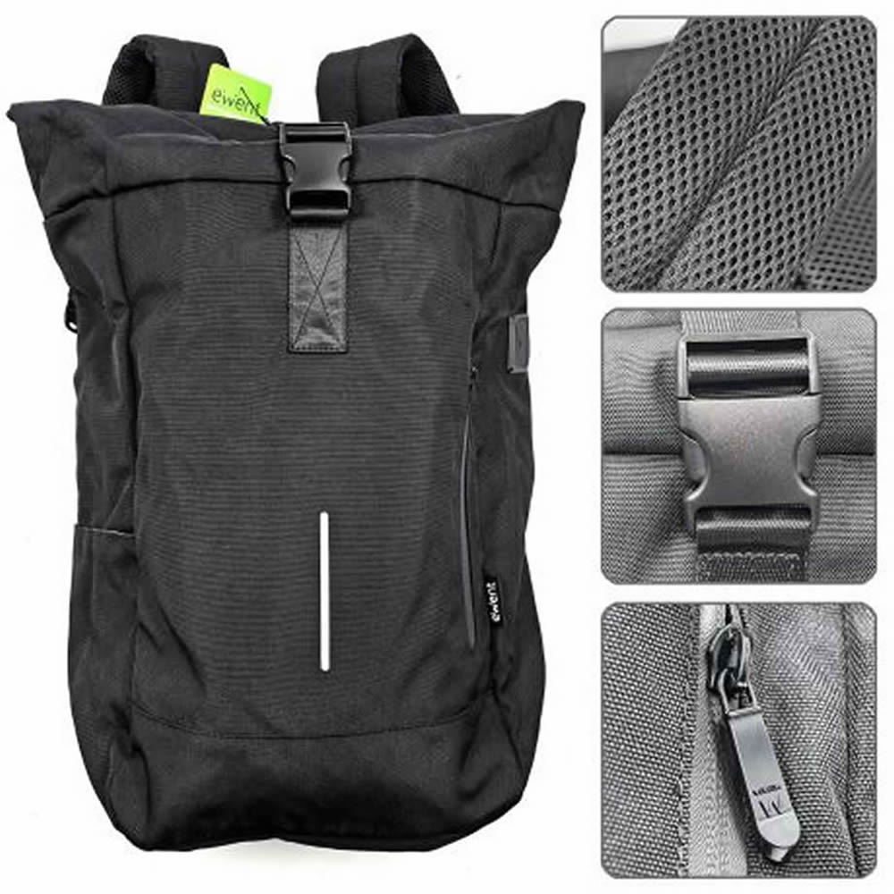 Ref. EW2536 - Ewent EW2536 Trendy Roll Mochila para Portatil hasta 17,3" - Imprermeable - Correa para Trolley - Espalda y Hombros Transpirables - Bolsillo Trasero Antirobo - Color Negro.