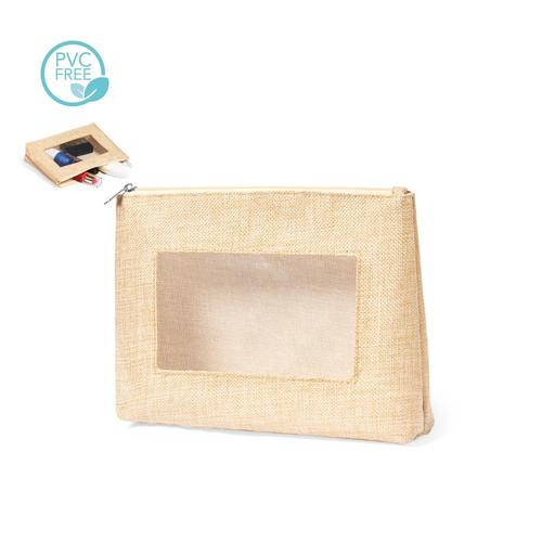 Neceser de inspiración nature con ventana en un lado. Con cierre de cremallera a juego y de acabado cosido. Fabricado en poliéster de tono crudo, con ventana en EVA transparente. Peso: 37,5 grs. Codig...