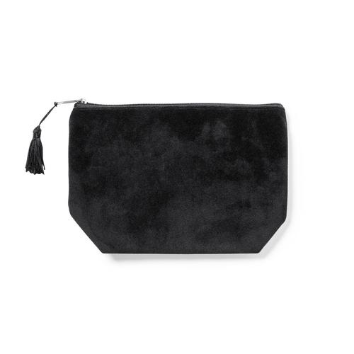 Neceser de tacto terciopelo, con cierre de cremallera y borla en tirador. Fabricado en terciopelo rayón y de acabado cosido, disponible en colores marrón y negro. Peso: 340 grs. Codigo de impresión: F...