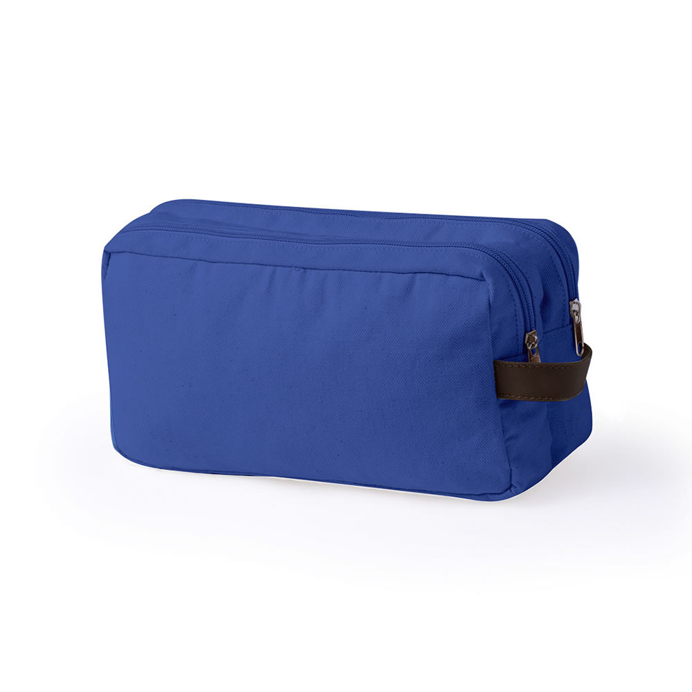 Neceser de doble compartimento fabricado en resistente canvas. Con cierre de cremallera, tiradores y asa en polipiel marrón. Disponible en elegantes colores. Material: Canvas.