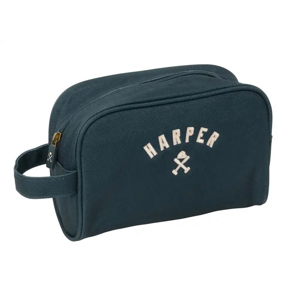 Neceser Halgar color Azul. Codigo de impresión: E(1), N(8), O. Medida largo: 21 cm. Medida alto: 12.5 cm. Peso artículo: 18 grs. Estuche de línea nature elaborado en algodón reciclado. Compartimento p...