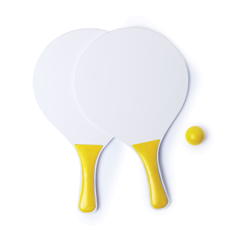 Palas playa faluk color amarillo. Composicion: Madera. Codigo de impresión: E(1). Medidas: 19 x 33 x 0 cm. Par de palas de playa de alta calidad en madera natural de variada gama en vivos colores. Con...