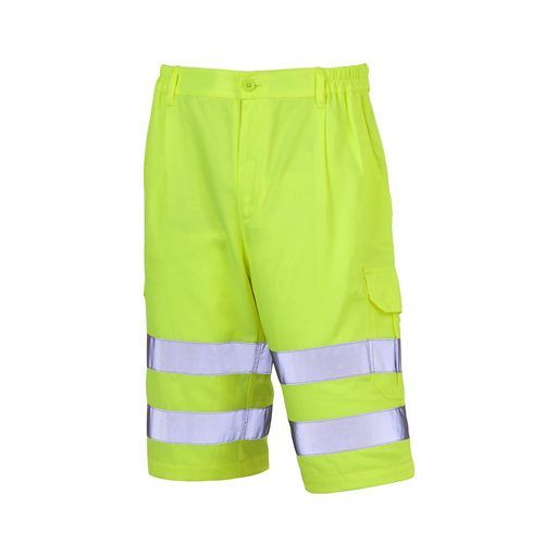 Pantalon Multibolsillos Av Bermuda Color Amarillo Talla XS. Elásticos laterales en cintura, Cierre botón y cremallera, 2 bolsillos traseros con cierre de velcro 2 bandas reflectante en pernera de 5 cm...