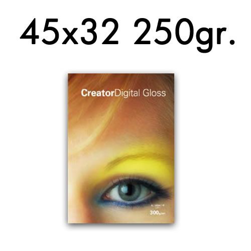 Paq. de 250 hojas de papel 45x32 cm 250 gr. Creator Digital Gloss Un papel único y preparado para el futuro.Gracias a su gran lisura y superficie uniforme, los resultados de impresióncon Digital Glos...