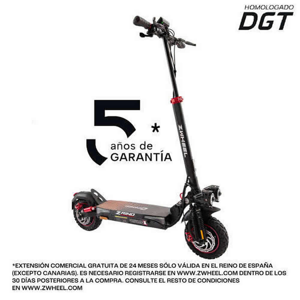Ref. PZ0004 - Zwheel ZRino Patinete Electrico Motor 600W - Homologado DGT - Suspension Delantera y Trasera - Velocidad hasta 25Km / h - Autonomia hasta 50km - Carga Maxima 120kg - Ruedas 10".