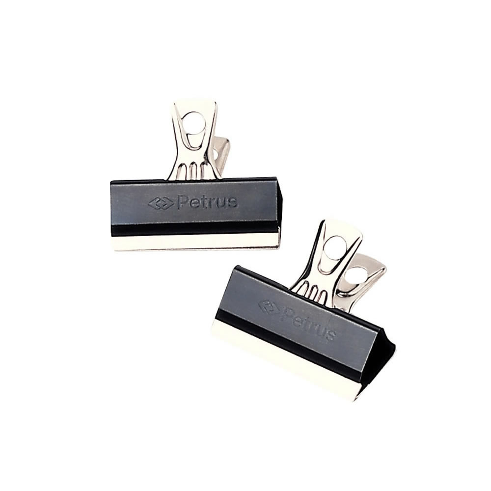 Pinzas de palas abatibles de 20 x 41 mm. Clips de alta resistencia hechos de acero templado en color negro y con asas en acabado níquel.