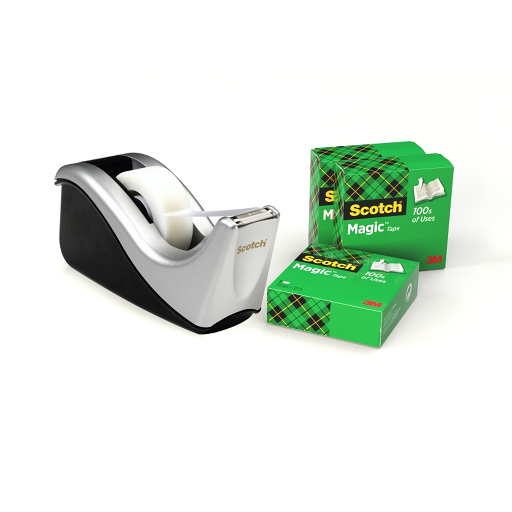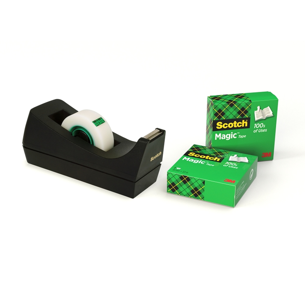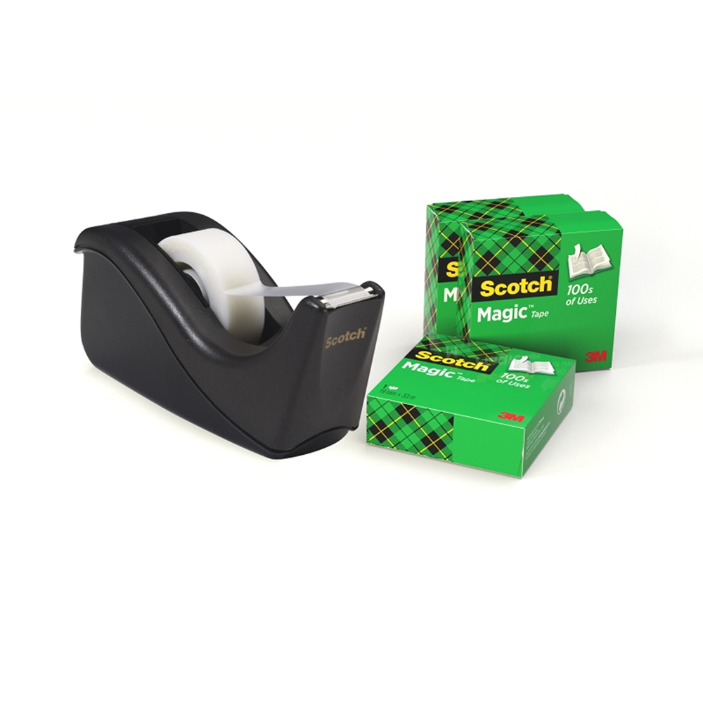 Ref. SC7100040322 - Scotch Magic Dispensador de Cinta Adhesiva - para Cintas de hasta 19mm x 33m - Incluye 4 Cintas Adhesivas - Color Negro / Gris.