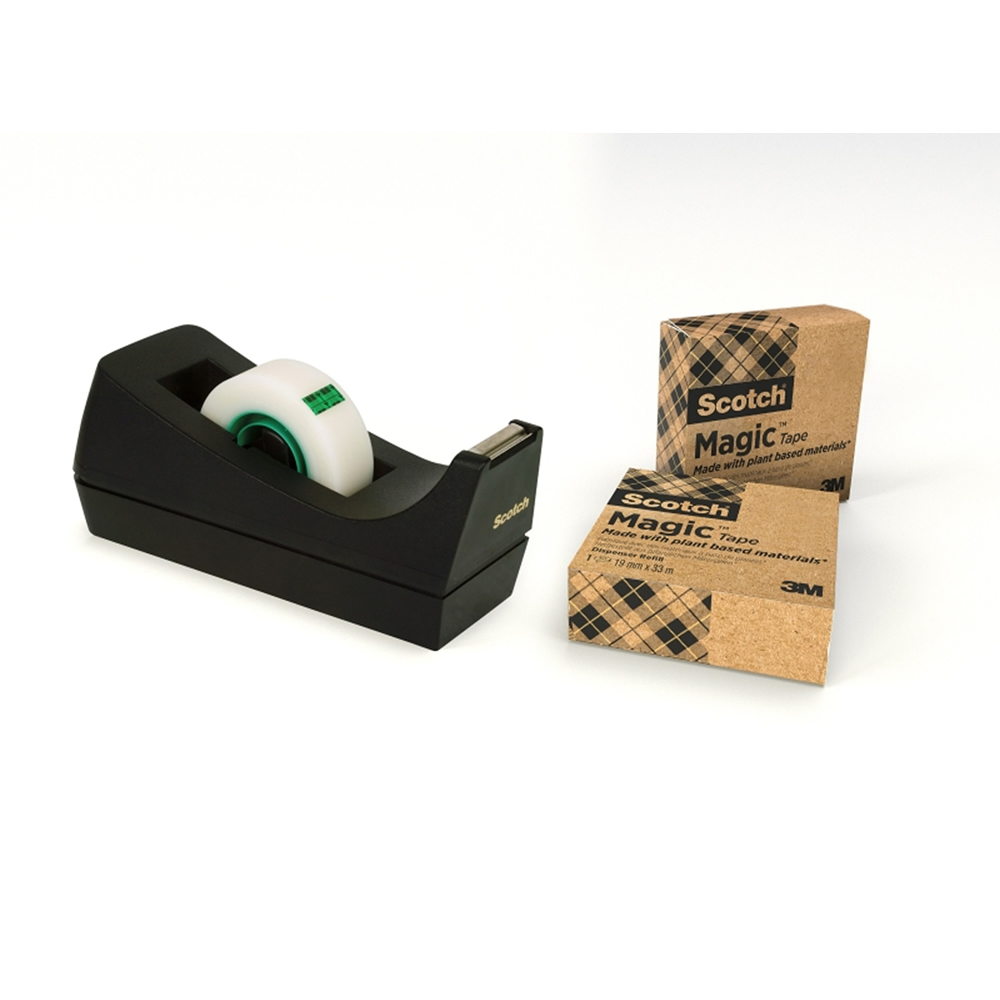 Ref. SC7100044085 - Scotch Dispensador de Cinta Adhesiva - para Cintas de hasta 19mm x 33m - 66% Adhesivo Vegetal - Incluye 3 Cintas Adhesivas - Color Negro.