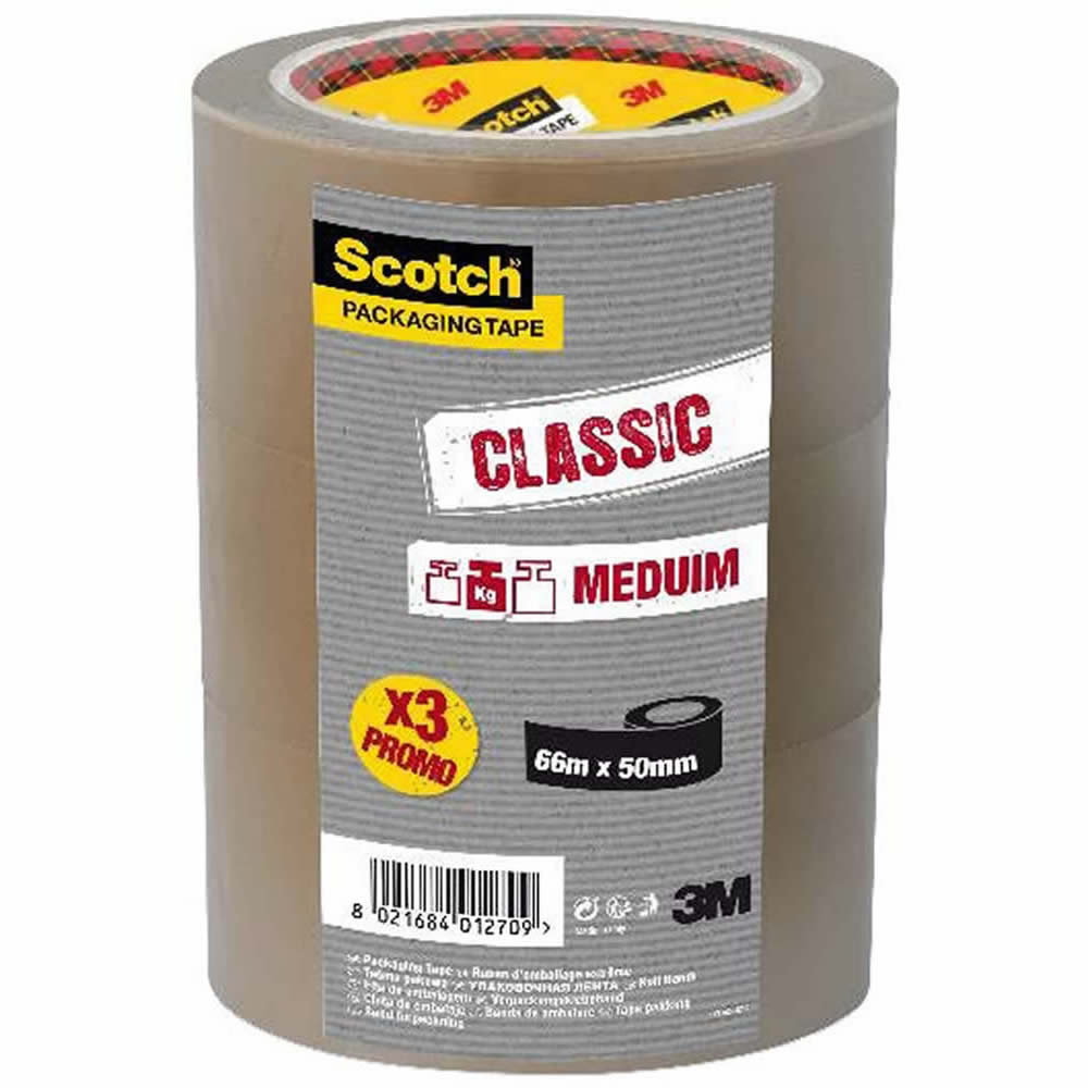 Ref. 7100203149 - Scotch Classic Pack con 3 Precintos de Embalaje 50mm x 66m - Color Marron.